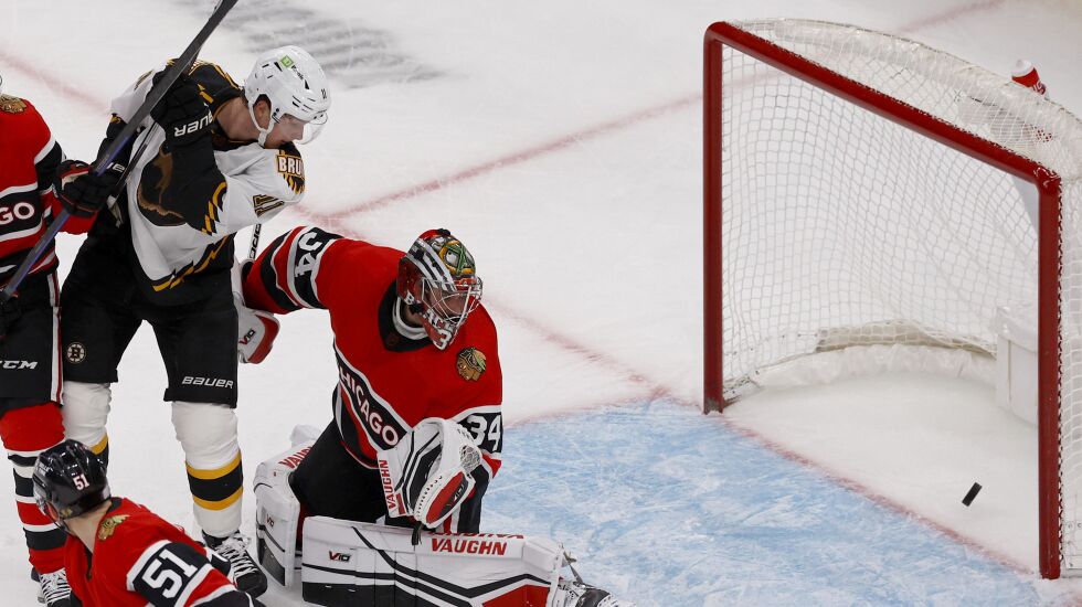 Instead, the Bruins dominated all 60 minutes themselves. Scoring chances favored the hosts 15-1 after the first period and 47-17 overall — the most chances the Hawks have conceded in a game since October 2021.