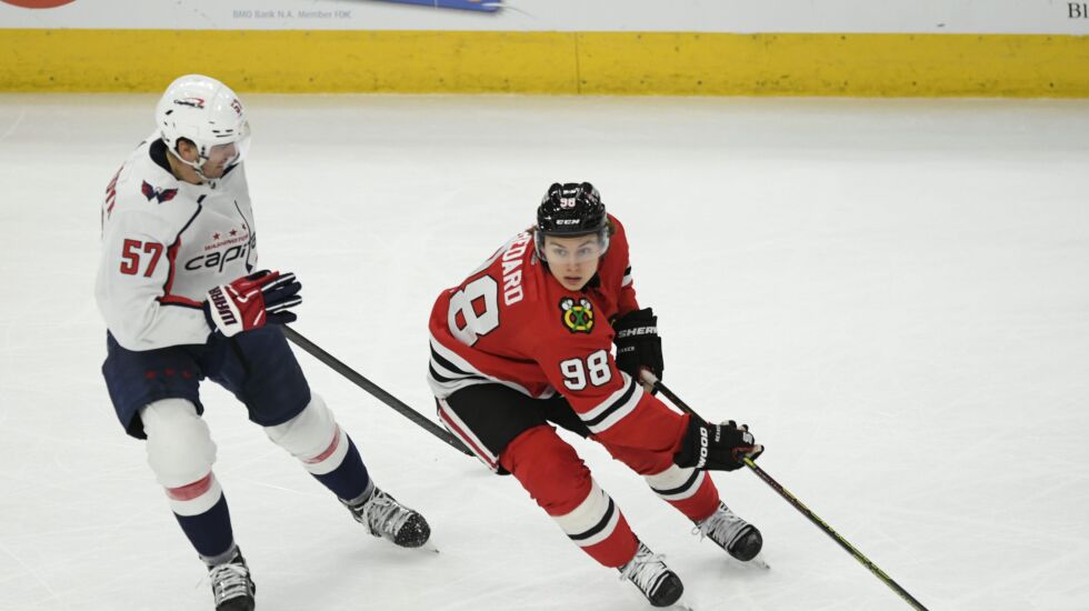 Without a goal over the last five games, Bedard still had two assists during the Blackhawks’ 4-2 loss to Washington, and it’s the second helper that stood out. Late in the third period with the Hawks down 4-1, Bedard skated down the left side of the attacking zone to a few feet from the goal line and fired a backhand saucer pass through the slot to a wide-open Connor Murphy, who one-timed the feed past Capitals goaltender Darcy Kuemper.