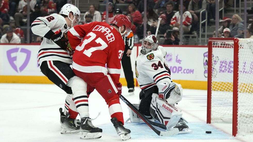 But 11 of the Wings’ 20 chances were high-danger, exemplifying how occasional critical breakdowns keep costing the Hawks. Rookie defenseman Wyatt Kaiser had a particularly tough night.