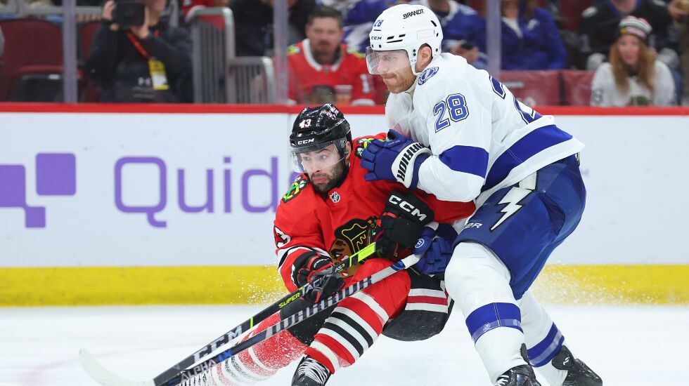 Early in the first period, Seth Jones took advantage of a sloppy line change by the Lightning’s penalty kill, crashed the net and knocked in a pass from Raddysh for the Hawks’ only goal. He became the first Hawks defenseman to score with the man advantage since Connor Murphy in May 2021, snapping a 123-game drought.