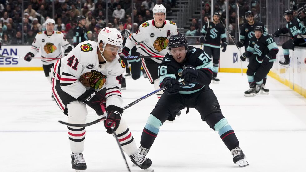 Richardson mentioned a couple plays — both off defensive-zone faceoffs — in the Hawks’ loss Friday to the Canadiens. In the first period, Phillips reacted decisively to beat Juraj Slafkovsky in a puck battle, then fed Connor Bedard to jump-start the rush that led to Ryan Donato’s goal.