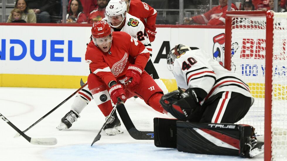 Facing his younger brother — Red Wings forward prospect Elmer Soderblom — for the first time on NHL ice Wednesday, Arvid Soderblom saved 31 of 33 shots in a 4-2 Hawks win in Detroit.