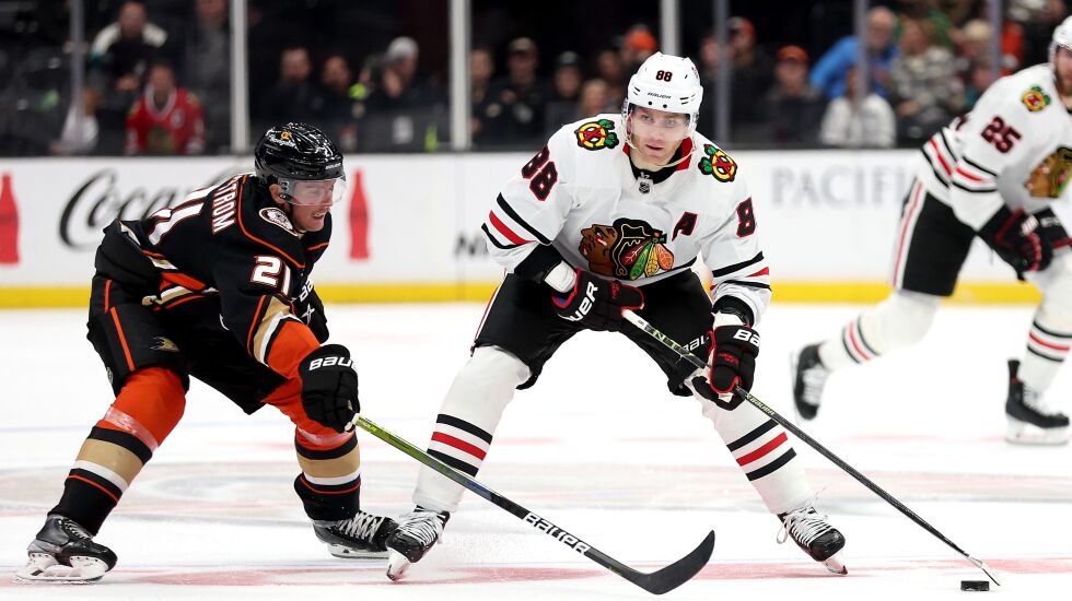 He promptly extinguished any possibility that quip would jinx him. Kane recorded two assists — and nearly a third point when he hit the post on a 200-foot prayer toward an empty net — in the Blackhawks’ 3-2 win over the Ducks on Saturday night.