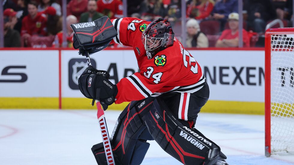 Blackhawks goalie Petr Mrazek is 31 years old and entering his 10th NHL season, yet he’s just now experiencing the dynamic of being the older goalie in a duo for the first time.