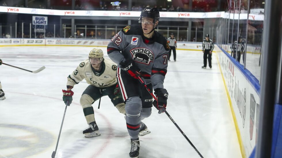 So this season with Rockford — aware he’s in the AHL purely to develop before he almost certainly earns a full-time NHL promotion to the Hawks — he has pushed himself outside his comfort zone.