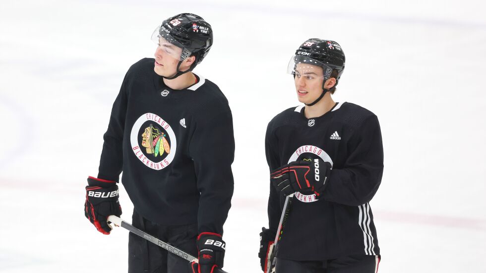 On defense, three rookie-veteran pairings — Wyatt Kaiser with Jones, Kevin Korchinski with Murphy and Alex Vlasic with Nikita Zaitsev — seemed like they might stick for a while. Murphy joked he will enjoy being the “slower guy” behind Korchinski.