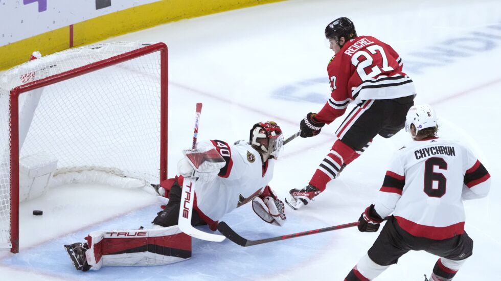 The Hawks generated tons of odd-man rushes and dominated the goaltending battle, as Alex Stalock made 35 saves for his second shutout of the season while last-minute Senators starter Mads Sogaard allowed five goals on 21 shots.
