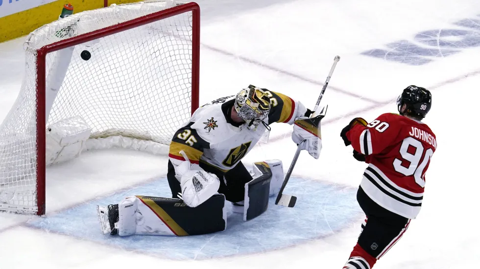 The Hawks’ 4-3 shootout victory against the Golden Knights at the United Center eliminated the Knights from playoff contention for the first time in their history.