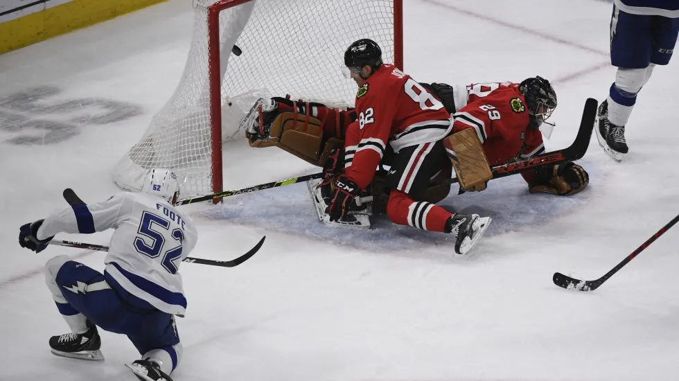 The Hawks easily could have led 3-0 instead of 1-0 after the first period, with Kirby Dach hitting the handle of Lightning goalie Andrei Vasilevskiy’s stick on an open net and Connor Murphy and Alex DeBrincat ringing consecutive shots off the post.