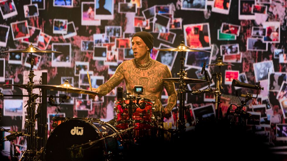 “Aliens Exist” hails from the band’s breakthrough album, 1999’s “Enema of the State,” which has been a prominent focus of the reunion tour setlist, largely the same since blink-182 made a surprise appearance at both Coachella weekends in April. “Dysentery Gary,” “Dumpweed” and “All the Small Things” were album standouts of the night, as was a giant blowup prop of an “Enema” art-decorated ambulance complete with blinking siren lights that hovered over the stage. During another “Enema” highlight, the emotive “Adam’s Song,” a montage of footage from blink’s early days played over the video screens like Polaroid snapshots of a bygone era worth celebrating.
