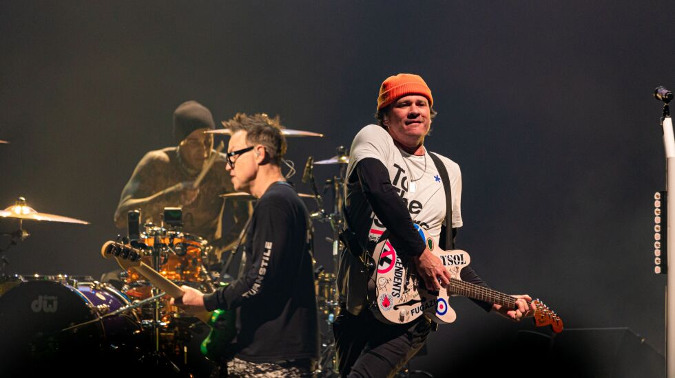 Going to a blink-182 show in 2023 is the musical equivalent of finding Neverland, where, for 90 minutes, all adulting is paused. As the second night of the pop punk band’s world reunion tour got underway Saturday in Chicago with an arsenal of cartoon video graphics, eighth-grade humor about STDs and the shape of hot dogs and mass singalongs rueing the pitfalls of childhood trauma and teenage heartbreak, it begged the question, “What’s our age again?”