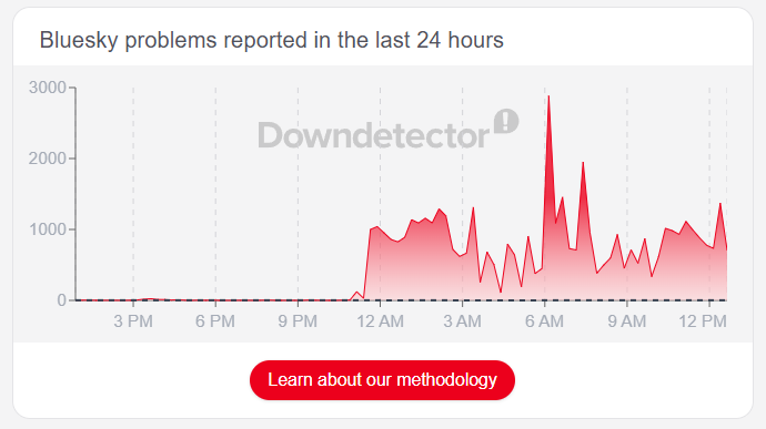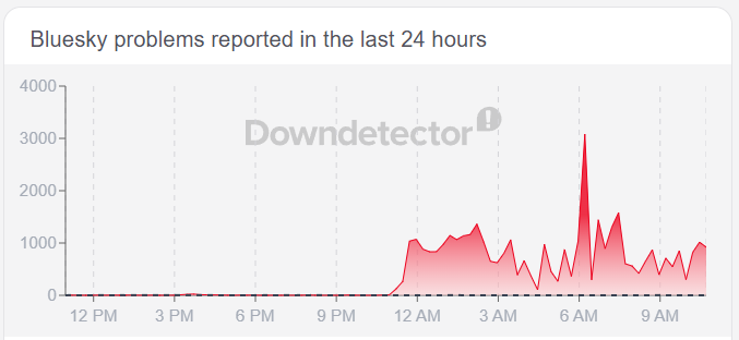 I expect reports will jump soon as it seems Bluesky is having even more issues.