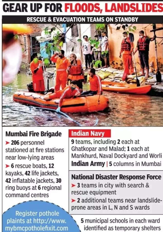 With the state government already warning of extreme rain events owing to climate change, the BMC said, National Disaster Response Force (NDRF) personnel, as well as army and navy teams will be prepositioned in the city for rescue and relief operations. In a first for Mumbai, five columns of army personnel will be on standby. Each column comprises around 100 personnel. Moreover, a team of 206 fire officers and personnel have already been placed at fire stations located near low-lying, flood-prone areas of the city.
