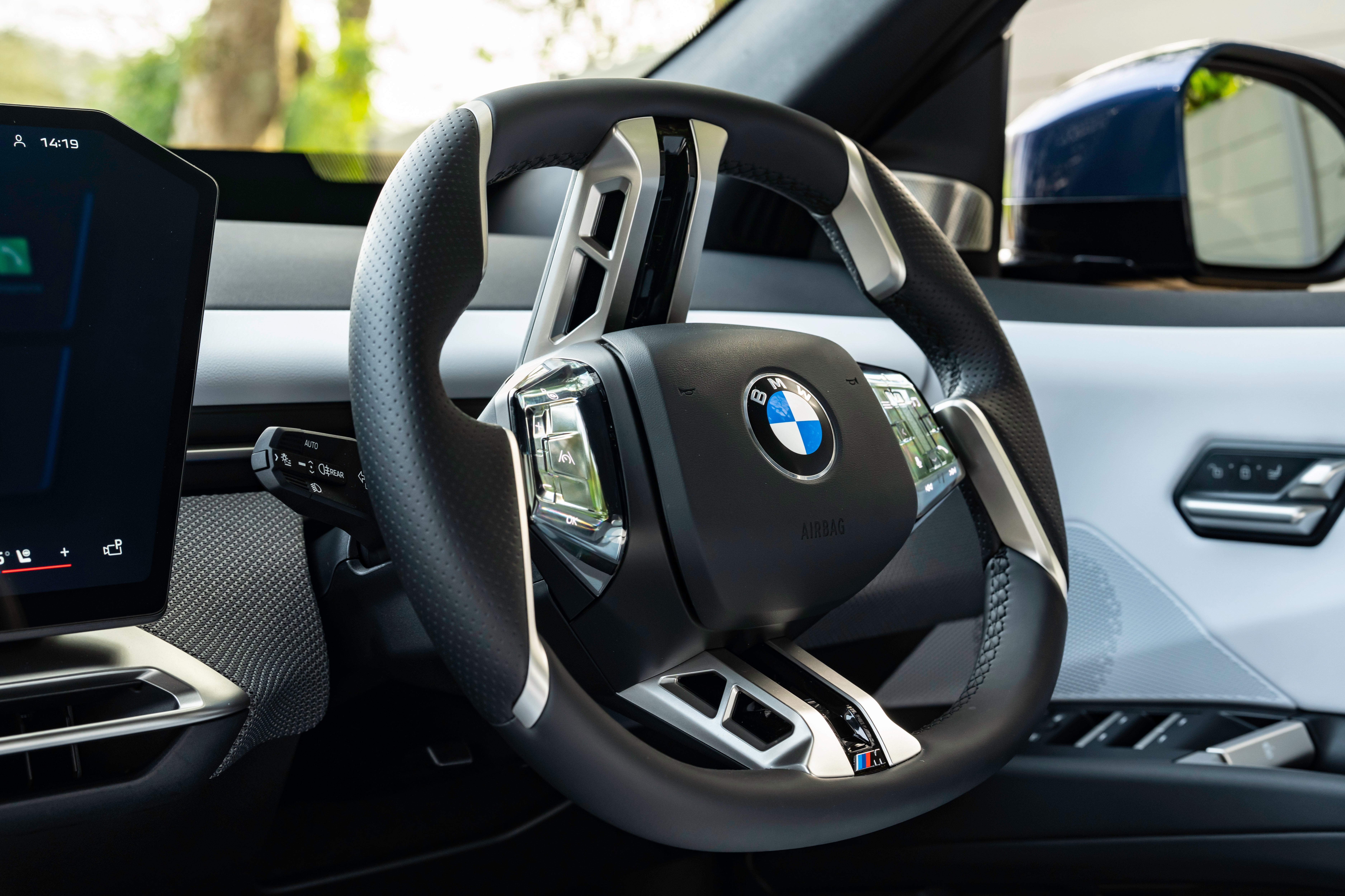 The iX3 M Sport adds sportier styling and interior details including M exterior design features, 20-inch M alloy wheels and a sports steering wheel.