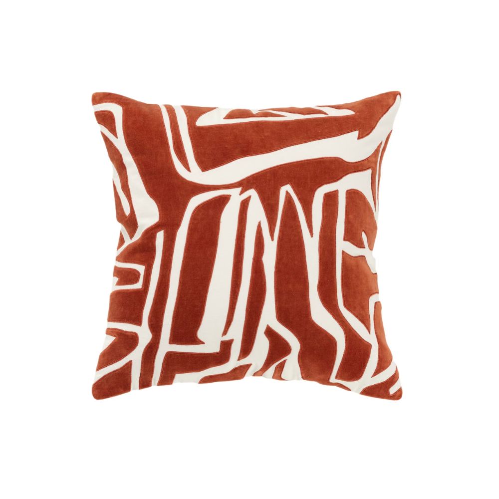 Mimicking the abstract lines found in nature, this velvet terracotta throw pillow would bring depth and interest to a matte neutral sofa. Mix with olives and golds for added warmth and variation.