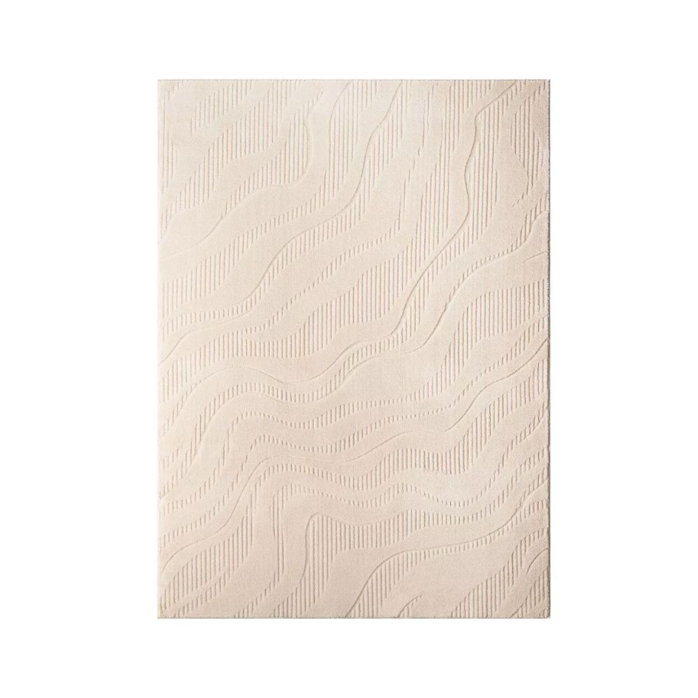 The organic lines in this rug echo the sound wave design of Bobby and Talani Diggs' custom-made pieces as well as having an organic feel that looks like topography on a map or layers of natural stone.