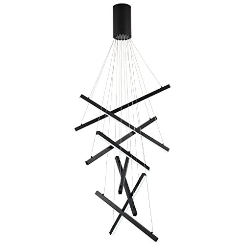 'The light fixture reads like musical bars suspended in motion, reinforcing the balance between contrast and harmony,' explains Maya, and this modern chandelier creates a similar effect.