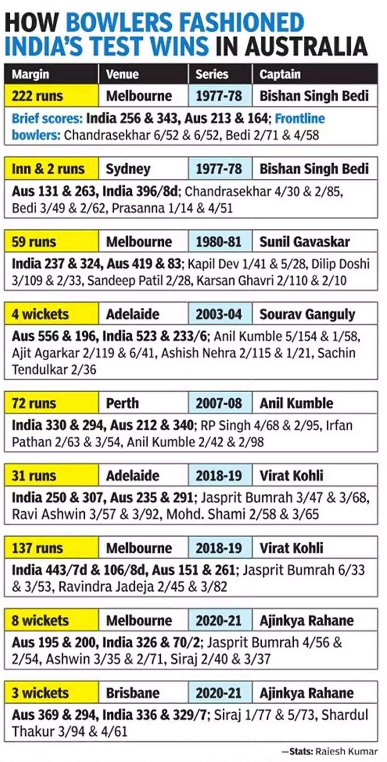 Bumrah had 21 wickets in the 2018-19 series win. In Brisbane in January 2021, Siraj got 5-73 in the second innings that kept India's target to manageable proportions and allowed Rishabh Pant to go for that almighty chase.