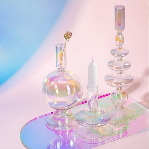 With these glass candlestick holders in your decor arsenal, you will be ready for any dinner party or home decor demands. They are elegant and beautiful and will quickly transform a table or room. The bubble glass is pretty on its own and even better when holding a candle or flower. There are eight colors to choose from.