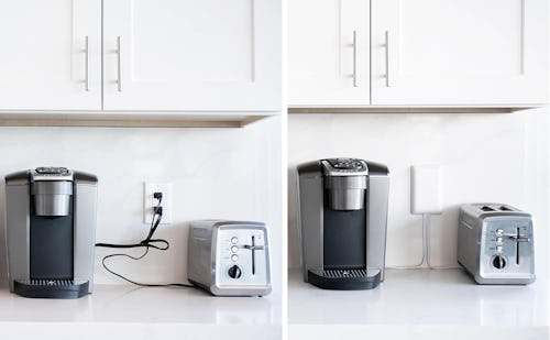 Amazon -Wires all over the counter or other surfaces create visual clutter fast. Get rid of it with this outlet concealer extension cord. Plug the flat plate into the outlet. Hide the wires with the included cable concealer kit. And place the plugs behind furniture or appliances. It’s a fast and easy hack that will have a huge impact on the look and function of your home. Choose from two outlet types and five styles.