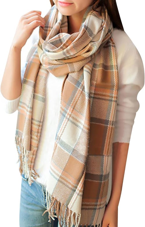 You’re almost getting two pieces for the price of one when you grab this scarf. The oversized cut means you can wear it as a shawl, making it great for layering — and the cozy acrylic fabric will help you stay comfortably warm on chilly nights. Choose from dozens of colors: camel, red, purple, and more.