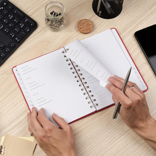 Amazon -Can’t remember what the username and password is for your credit card? Not a problem when you have this notebook. The pages are broken down alphabetically, and give you space to jot down the website, username, password, as well as any other extra info you might want to remember for later. Choose from eight colors: turquoise, purple, blue, and more.
