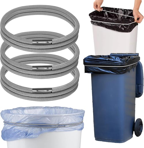 If your trash can liner is always sliding into the bin and making a mess, these trash can bands will stop that STAT. Stretch them around the top of the bin after you line it with a bag, and it will hold that bag securely in place. It’s a simple affordable solution to an irritatingly common problem. This is a pack of three, and they come in eight colors.