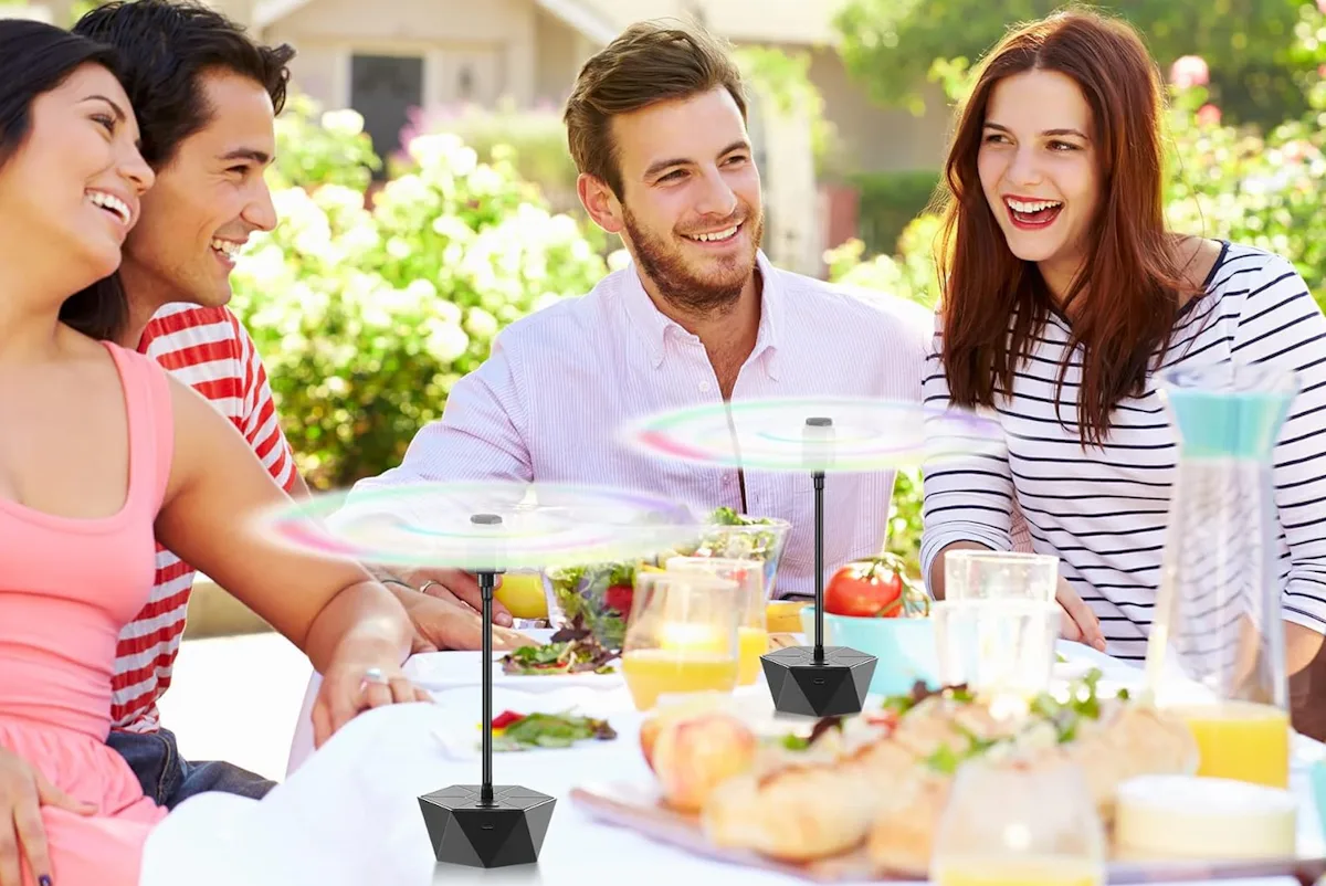 These fly-repellent fans are basically table insurance for burgers, fruit, and anything else you want to keep bugs away from. The fans have a flowerpot-style base with holographic blades that spin and refract light to deter flies from approaching. Each fan can run for up to 15 hours, and they’re rechargeable via USB-C cord. As a bonus, the soft-touch blades stop if they’re bumped, which is key around kids and pets.