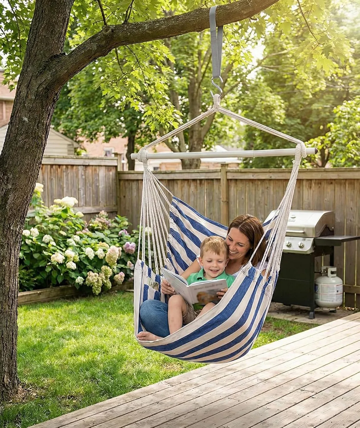 A cozy hammock chair with a built-in side pocket