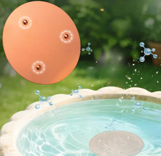 A copper disk that keeps your bird bath cleaner