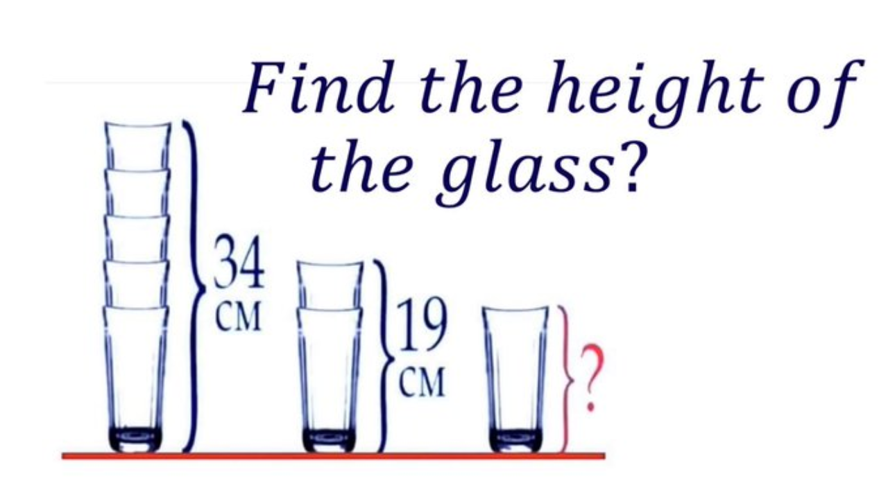 In the image, which has been shared on X (formerly Twitter) by Massimo (@Rainmaker1973), there are two dimensions: one is 34 cm which is the height of four glasses stacked on top of each other, second is 19 cm which is the height of two glasses stacked on top of each other. The question is to find the height of a single glass.
