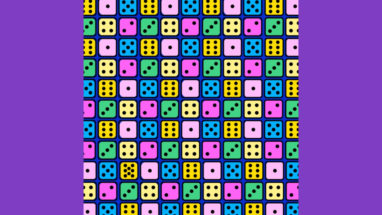 Color variations: Pay attention to the colors of the dice. While the odd dice may not differ in dot patterns, it could be a color mismatch with the surrounding dice.