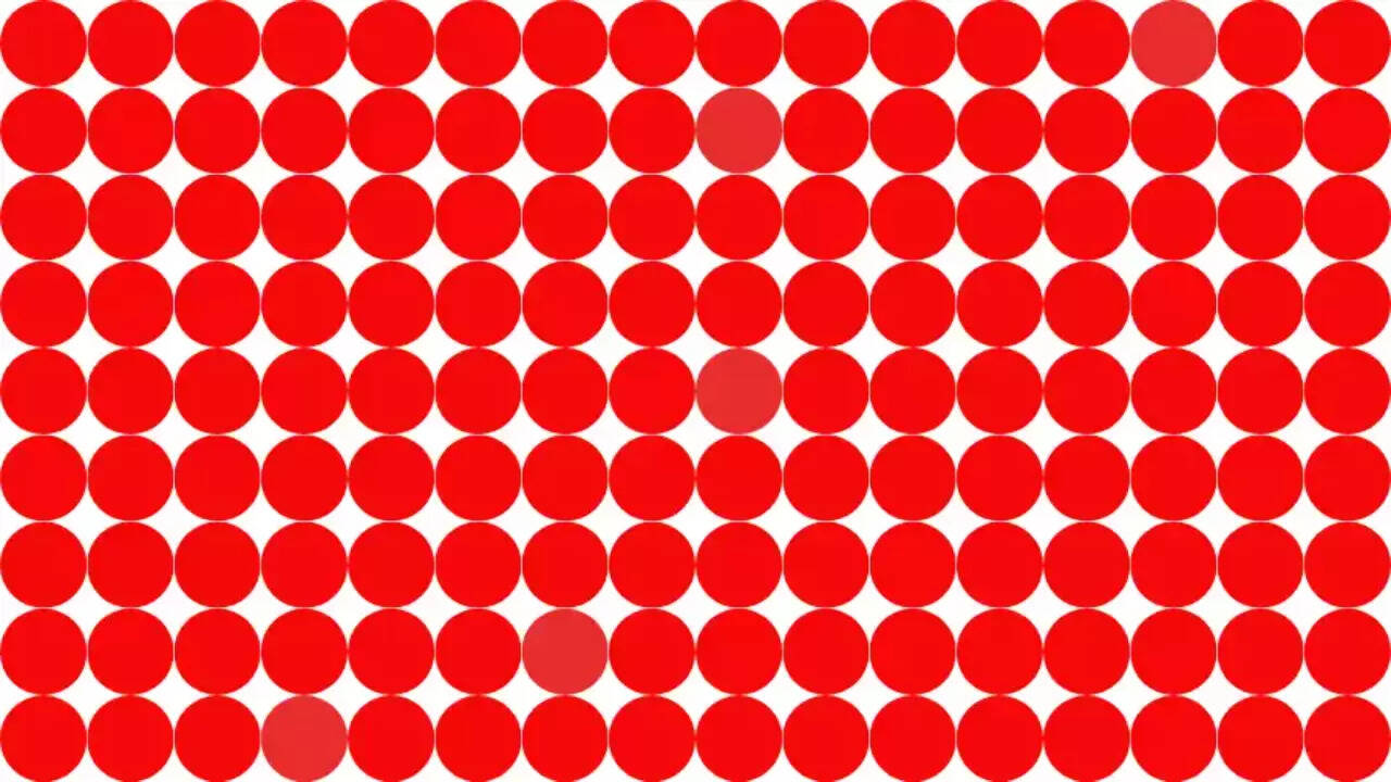 But first, let us introduce you to the image. Here we have a set of red dots arranged in a grid. Now, as you can see, all of them are red in colour, but some of them are a slightly "different shade" of red than others. So, take a look at the picture and tell us which ones are different. But remember, you have only 10 seconds. Are you ready? Go! Ten, nine, eight, seven, six, five, four, three, two, and one! All stop!