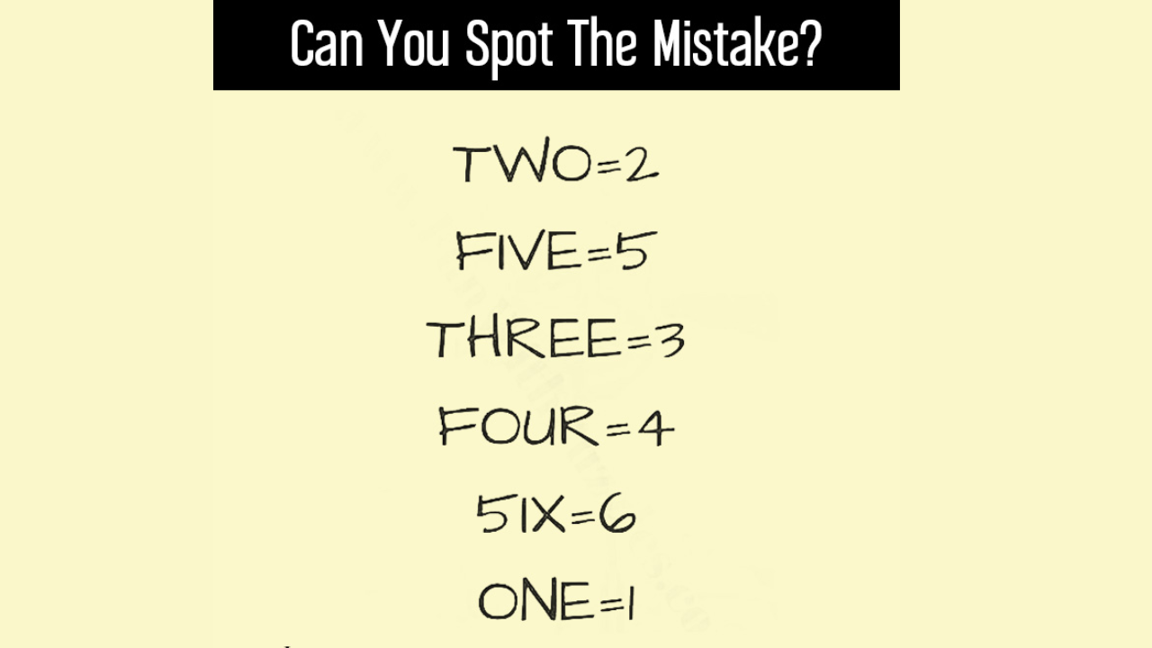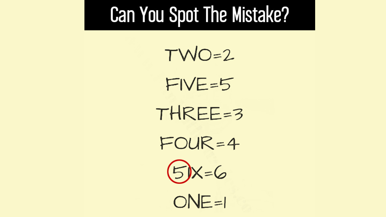 In this picture, the challenge is to find a mistake. Why is it difficult? Many fail to solve this puzzle within the given time duration, because it has numbers, words and most importantly, words with the same meaning as the numbers.
