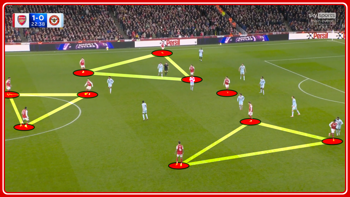 He’s achieved this because he’s so expertly coached a rotational system where three triangles across the pitch allow players to manoeuvre free of man-to-man marking and receive the ball between the lines in normally congested areas of the attacking third and… you see! Your eyelids are going just reading that.
