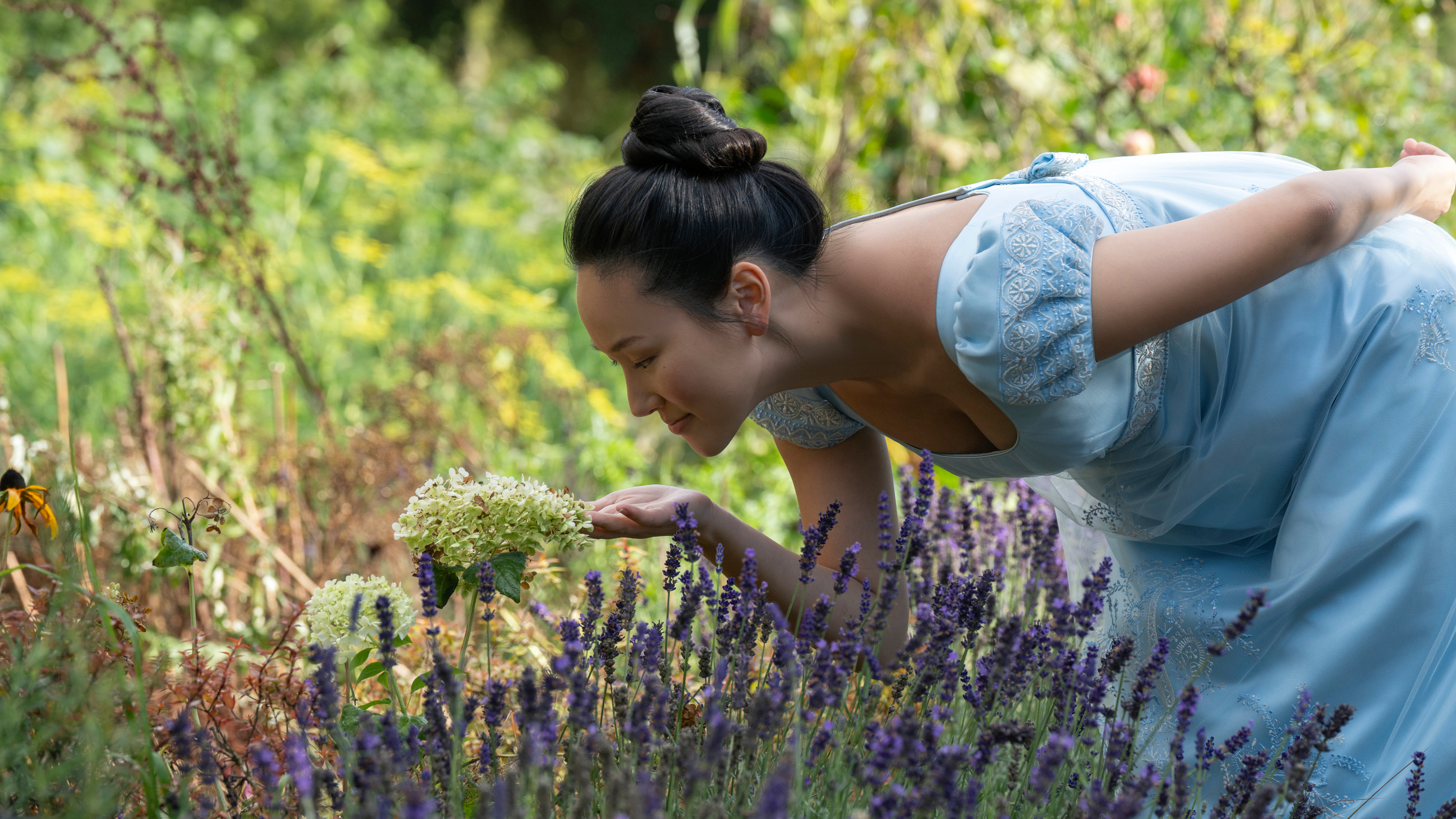 Of course, in true Benedict fashion, he sneaks off before the ball begins to attend a rather seductive party. While he’s off having his own fun, we’re shown glimpses of each character’s costumes for the ball, including a mysterious young woman in a glamorous silver mask and gown. Sophie Baek has entered the scene!