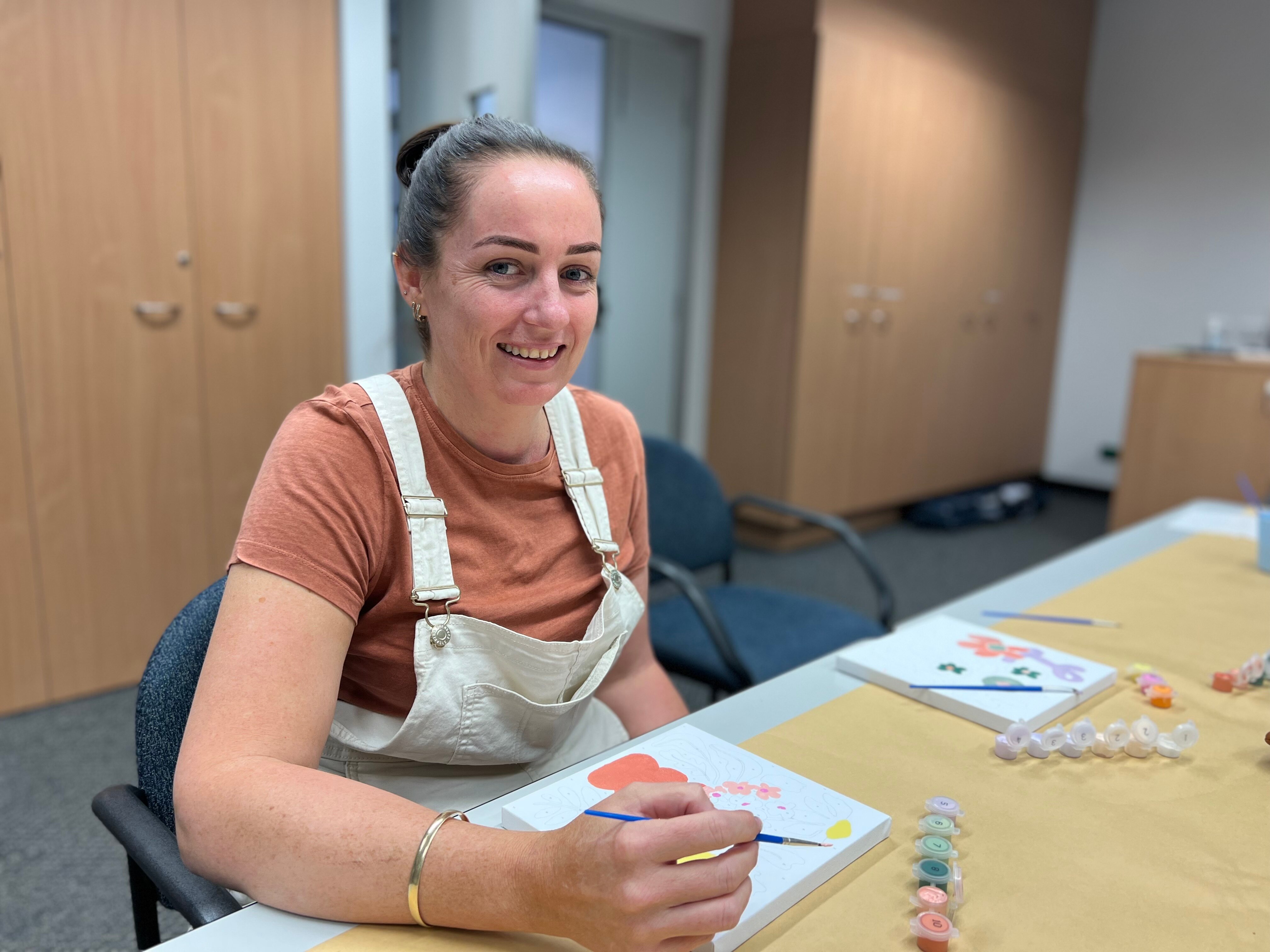 A youth worker attends the monthly outpatients' clinic and has organised activities, such as painting, for the young patients to do while they wait.