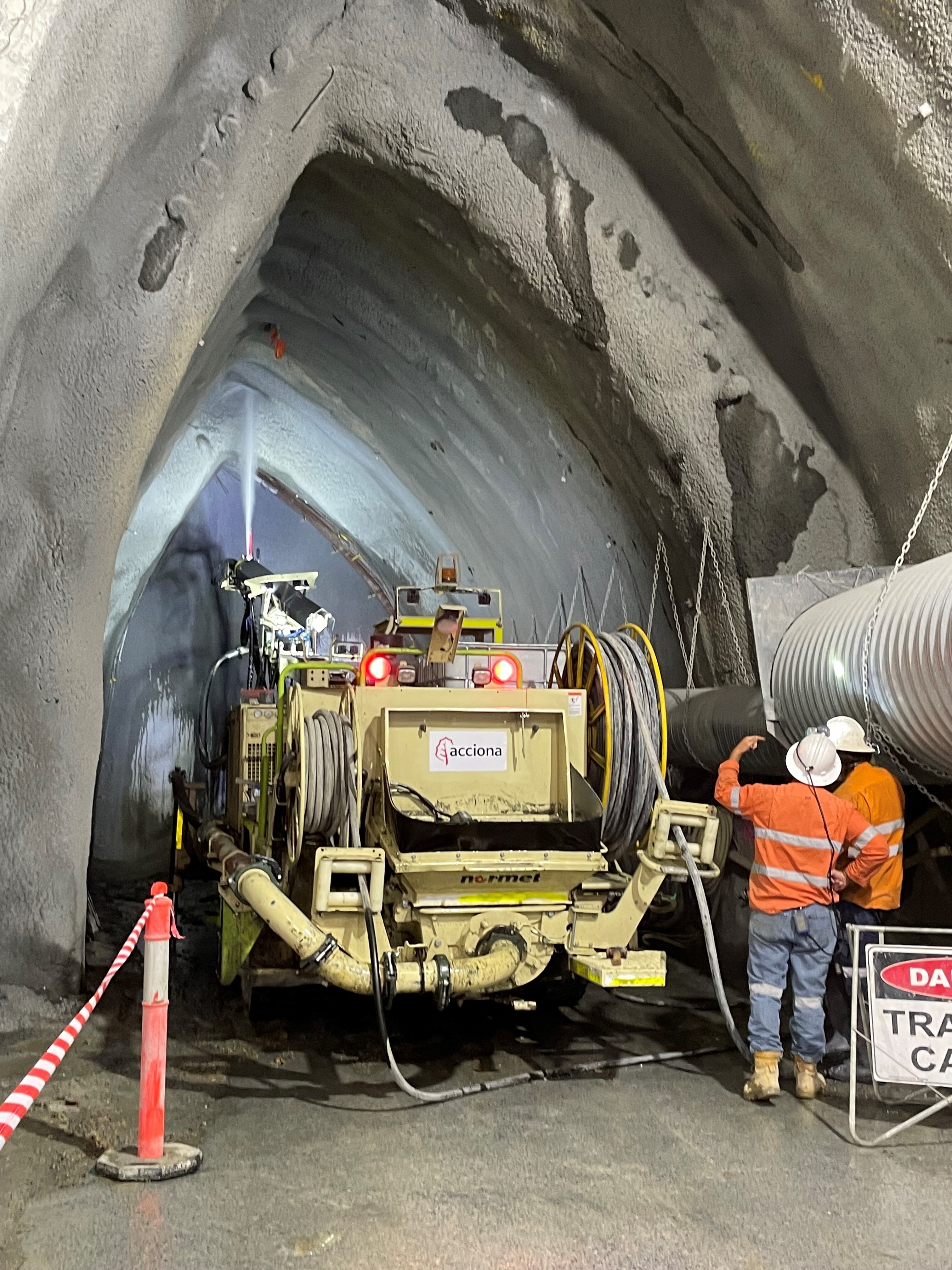 A purpose-built drill rig is being used during construction to install more than 20 kilometres of steel canopy tubes, which will help form the tunnel's arched roof section.