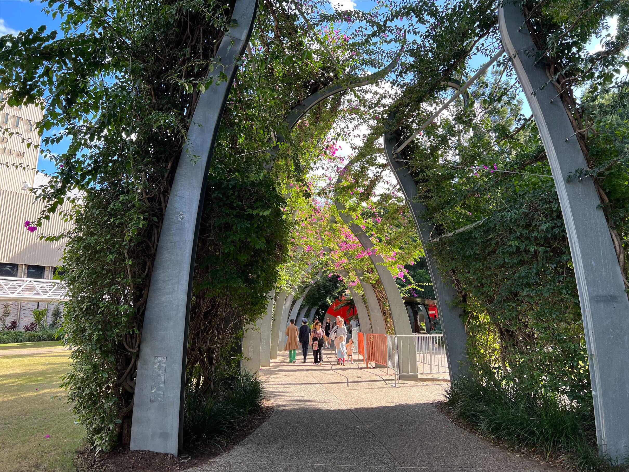 "Without the bougainvillea growing all over it, it looked quite weird. This strange metal structure being put through this parkland in the middle of our city," Ms Smith said.