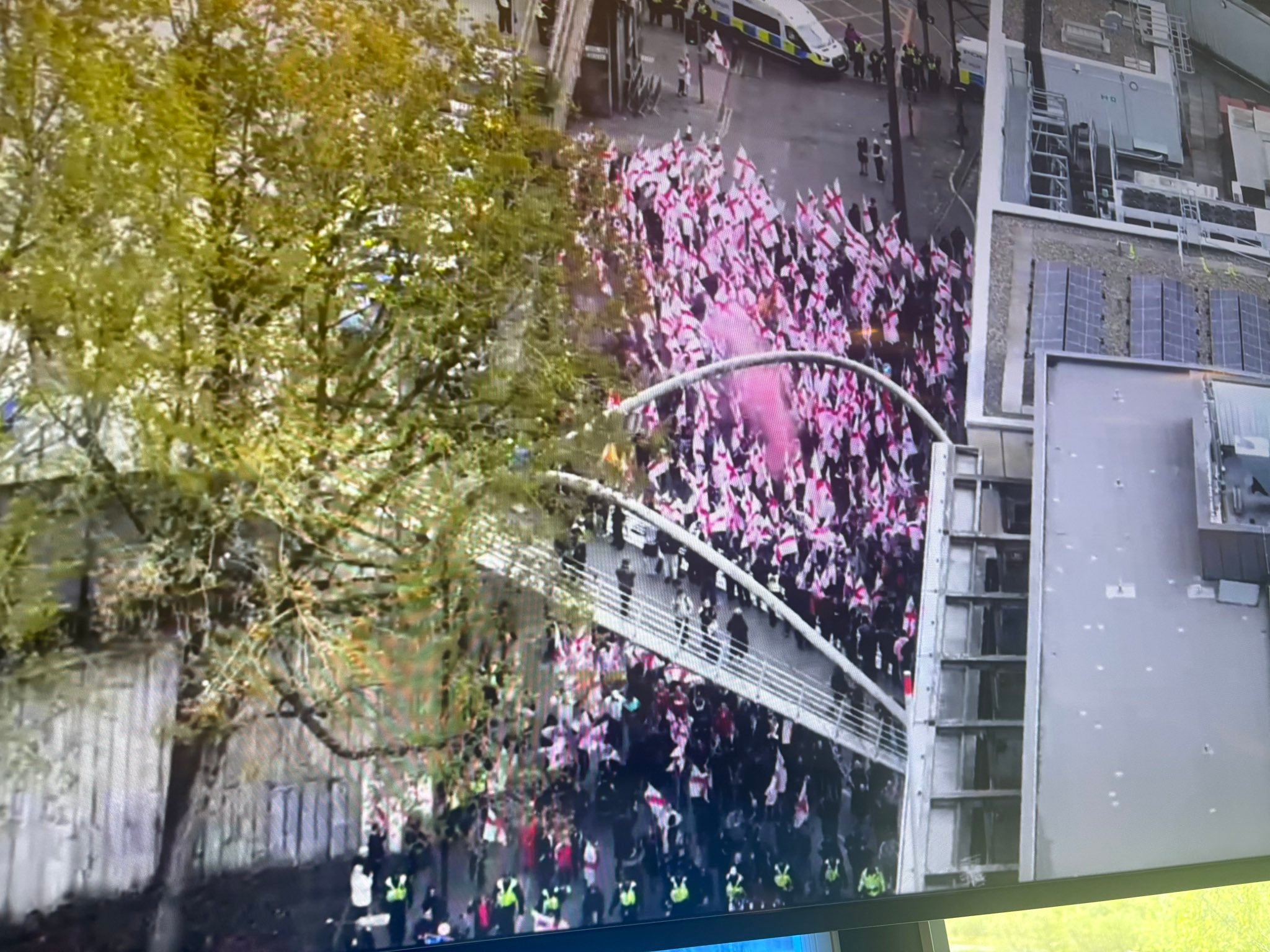 13:29 , Holly BancroftGreater Manchester police have shared an aerial photo of the Britain First march as it leaves from its Store Street starting point.