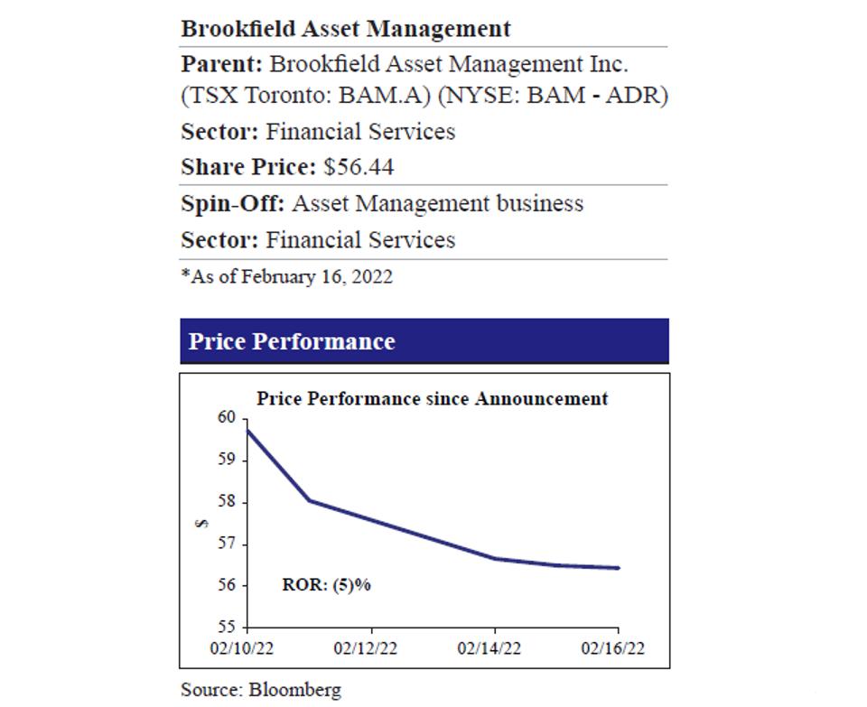 Brookfiled Asset Management Price Performance Spin-Off Research