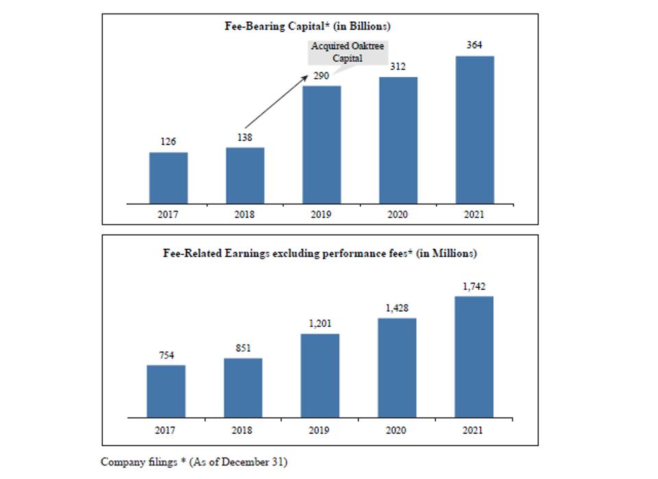 Revenue increased 27.5% YOY to $21.8 billion. FFO increased 23.3% YOY to $1.1 billion, while distributable earnings for common shareholders fell 20.3% YOY $1.3 billion. Fee-related earnings for 4Q21 grew 34.3% YOY to $552 million and realised carried interest fell by 30.5% YOY to $182 million.