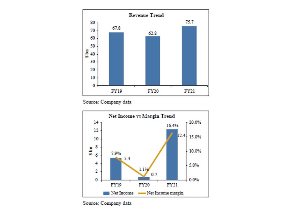 Net Income stood at $12.4 billion (FY20: $0.7 billion) and corresponding margin expanded ~1,523 bps to 16.4%. Net income attributed to the BAM shareholders grew to $4.0 billion (FY20: Net loss of $134 million). Diluted EPS increased to $2.39 (FY20: loss per share of $0.12).