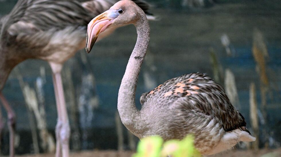 The two birds were among nine young American flamingos, ranging from 5 months to 2 years old, recently welcomed to the zoo for the first time since 1997.