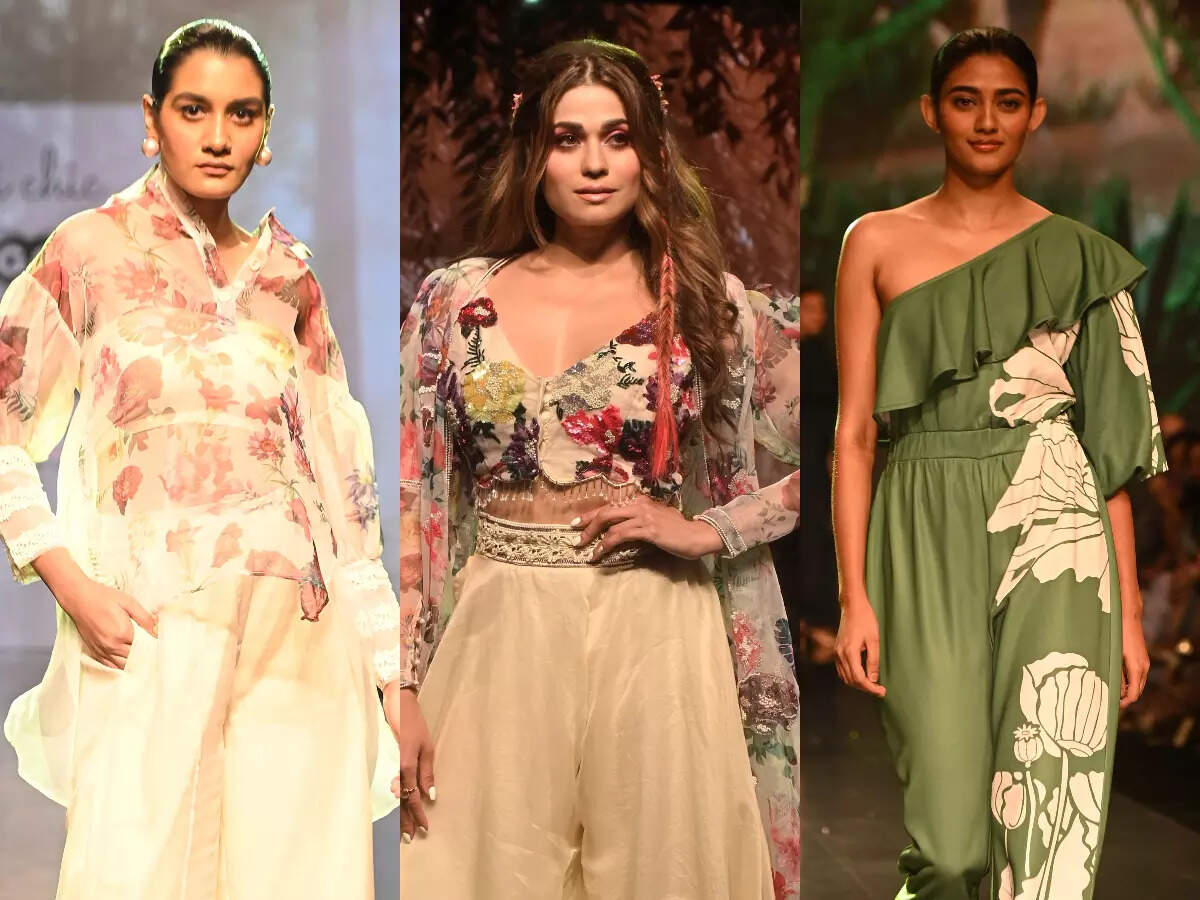 Day one at the Bombay Times Fashion Week dramatised the fusion of traditional wear. Young designers created silhouettes in many variations, from net dresses over swimsuits to gorgeous saris and Indo-western dresses with tassels. The first day from BTFW dropping trends for spring summer and florals are clearly defined. Here is a sneak peek at the afternoon shows. Designers presented delicate, soft and optimistic collections converting summer into fun loaded casual and formal wear.