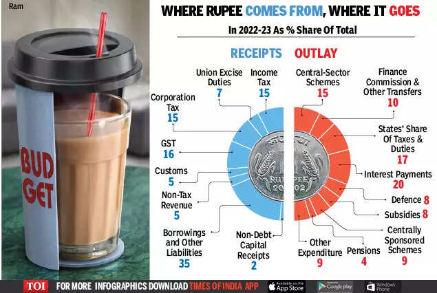 Tax revenues too are slated to go up by under 10% from Rs 17.7 lakh crore to Rs 19.3 lakh crore. That is because more substantial increases in revenues from corporation and income tax as well as GST and customs duties-all growing between 12% and 16%-are estimated to be partly offset by a decline in collection of union excise duties, presumably because of the petroleum sector.
