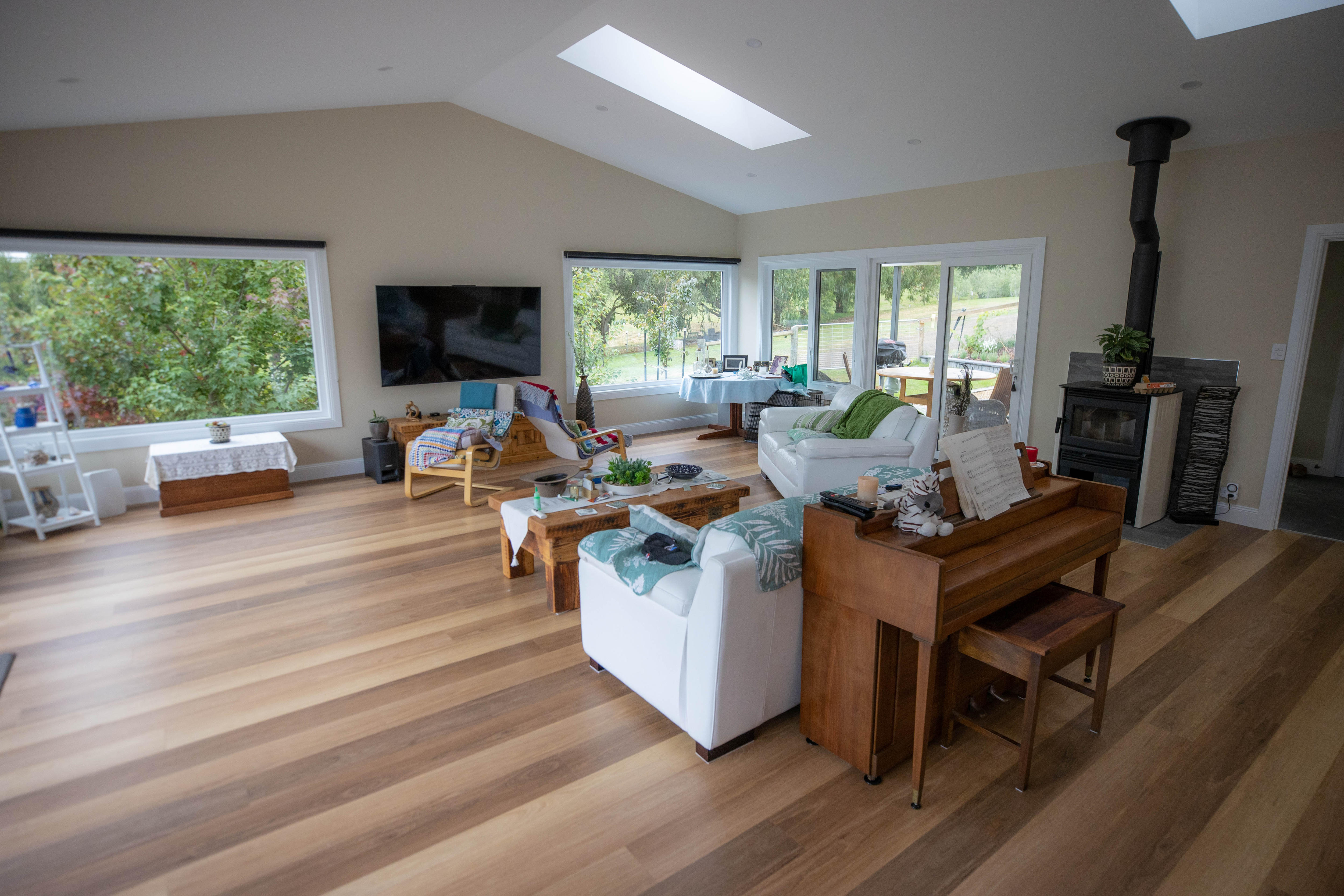 Adriane and Gillian Creamer have finally moved into their renovated house, in Tasmania's Huon Valley, three and a half years after works began.