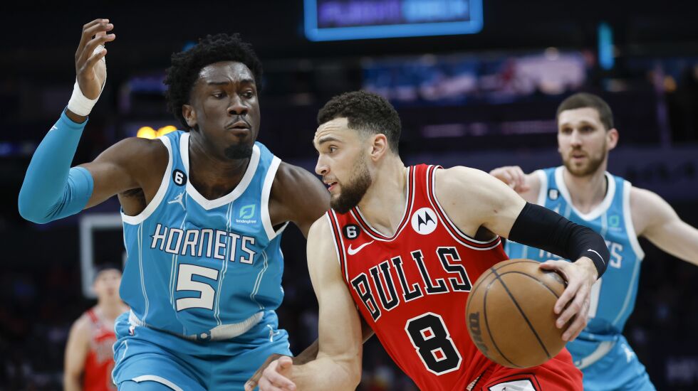 The Hornets made some noise, shooting 5-for-12 from three-point range in the first quarter, but couldn’t avoid sloppy possessions, turning the ball over eight times in the first 12 minutes. The Bulls scored 12 points off those turnovers. It was a storyline for the evening, as the Hornets finished with 22 turnovers that led to 29 points.