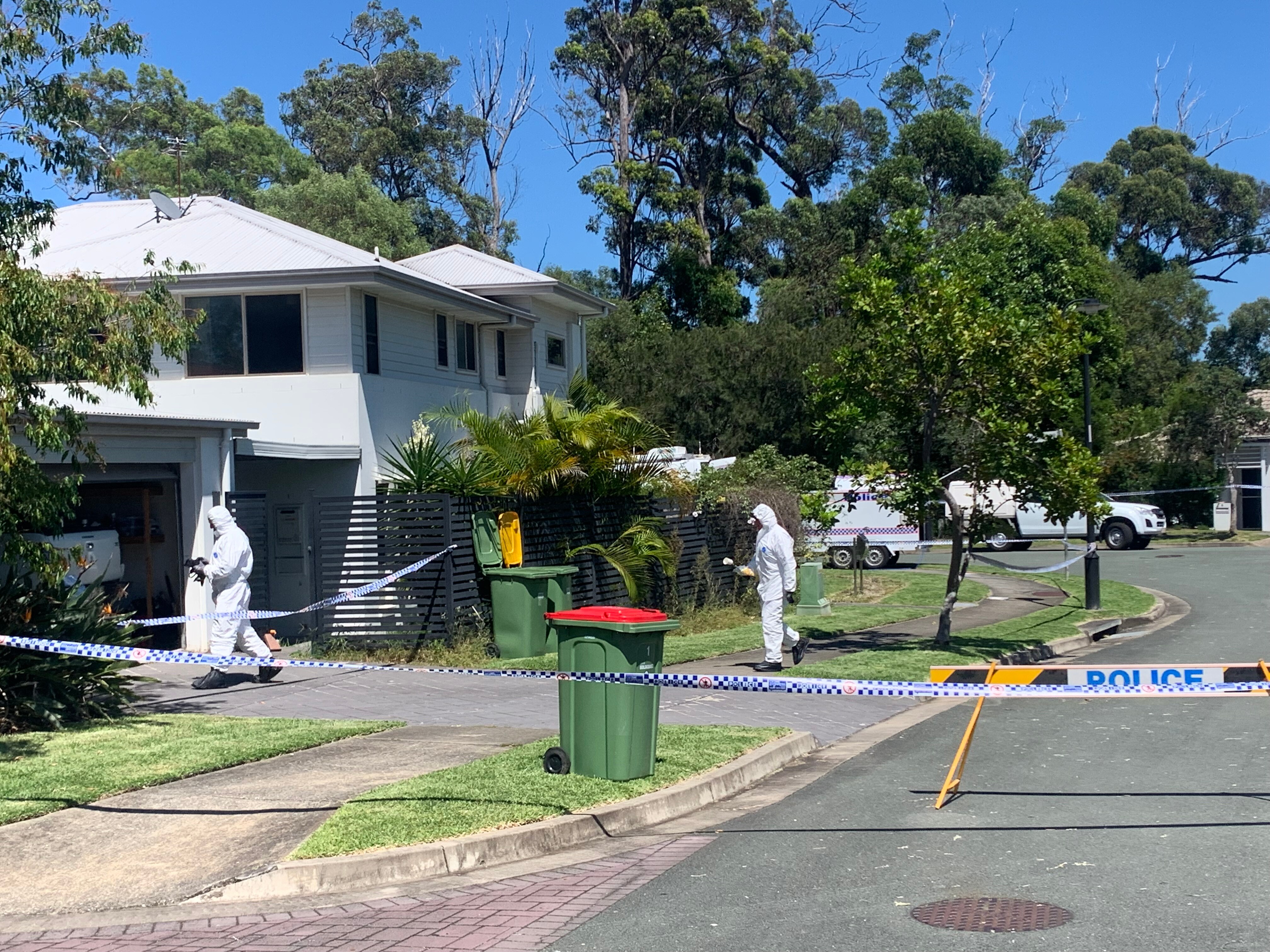 Authorities have blocked off the road in the northern Gold Coast residential area, with a heavy presence of police and fire investigators at the scene, including the mobile forensic facility.