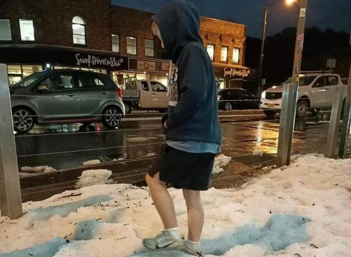 People in the subtropical seaside town of Byron Bay could be forgiven for thinking they were in the snow fields last night after an intense hailstorm turned the streets white.